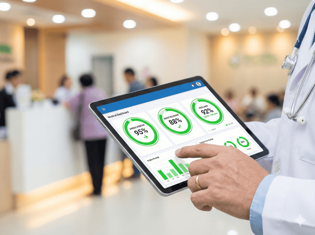 Mustahil memantau indikator ini secara manual dengan kertas. Dokter butuh "Dashboard Digital". Gunakan aplikasi RME (Rekam Medis Elektronik) yang memiliki fitur Dashboard KBK dan sudah Bridging P-Care.